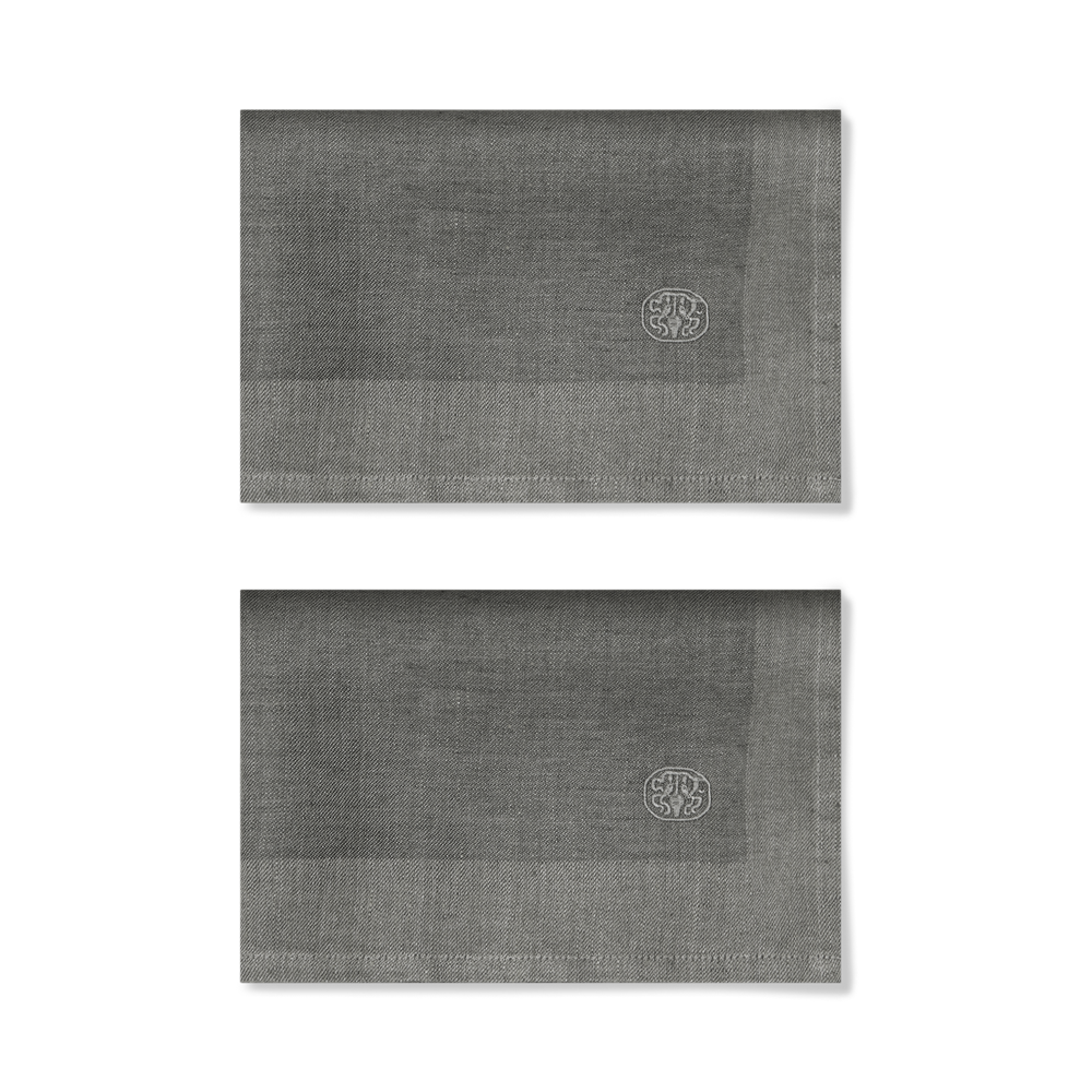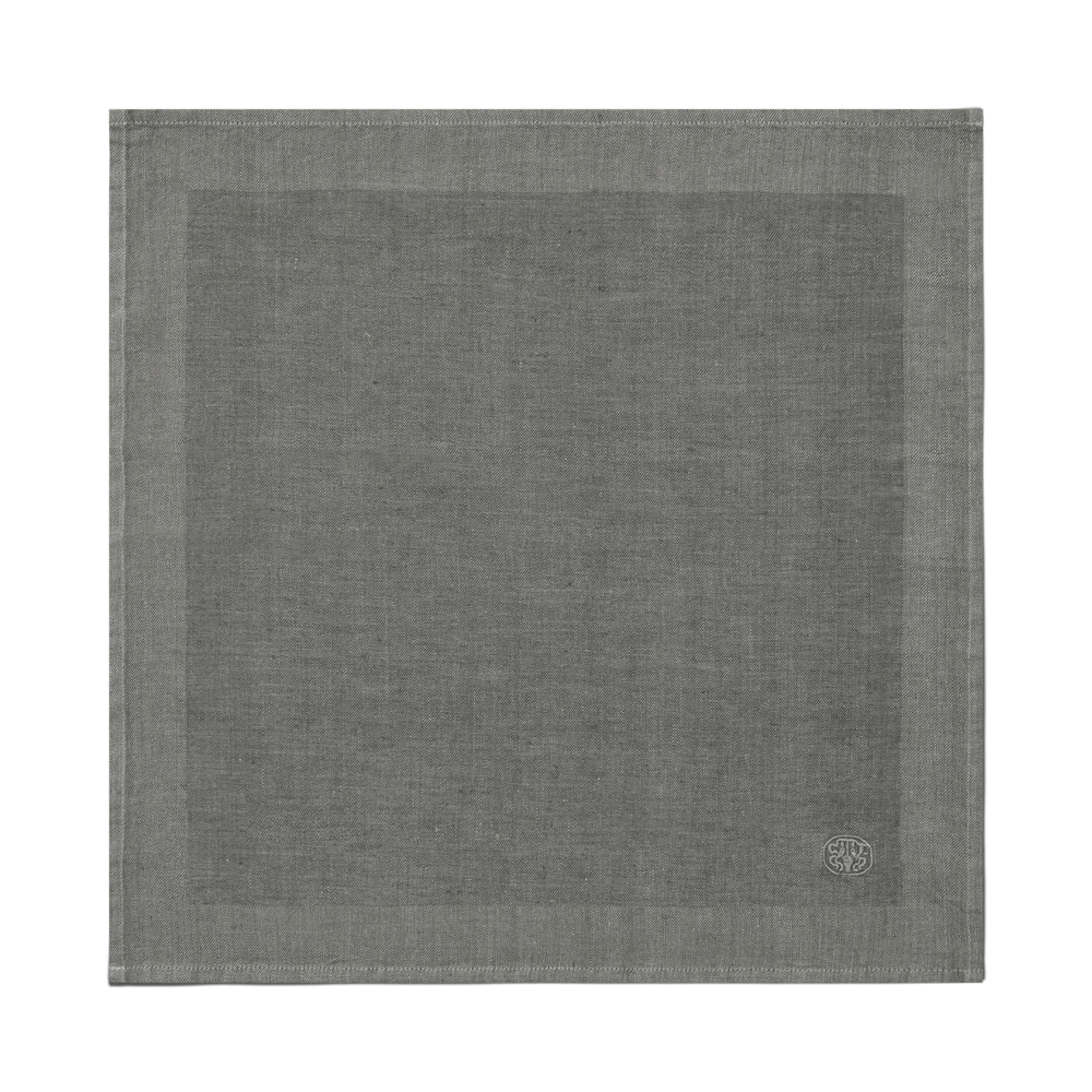 Met zijn eenvoudige ontwerp en diep donkergrijze kleur is de linnen servet met geborduurd logo een mooie aanvulling op de gedekte tafel. Het ziet er geweldig uit in een klassieke tafelsetting, maar het is ook geweldig in een informelere setting waar de tafel gedekt is zonder tafelkleed. Gebruik de linnen servet voor een groot diner, een eenvoudig ontbijt of aan de tuintafel.