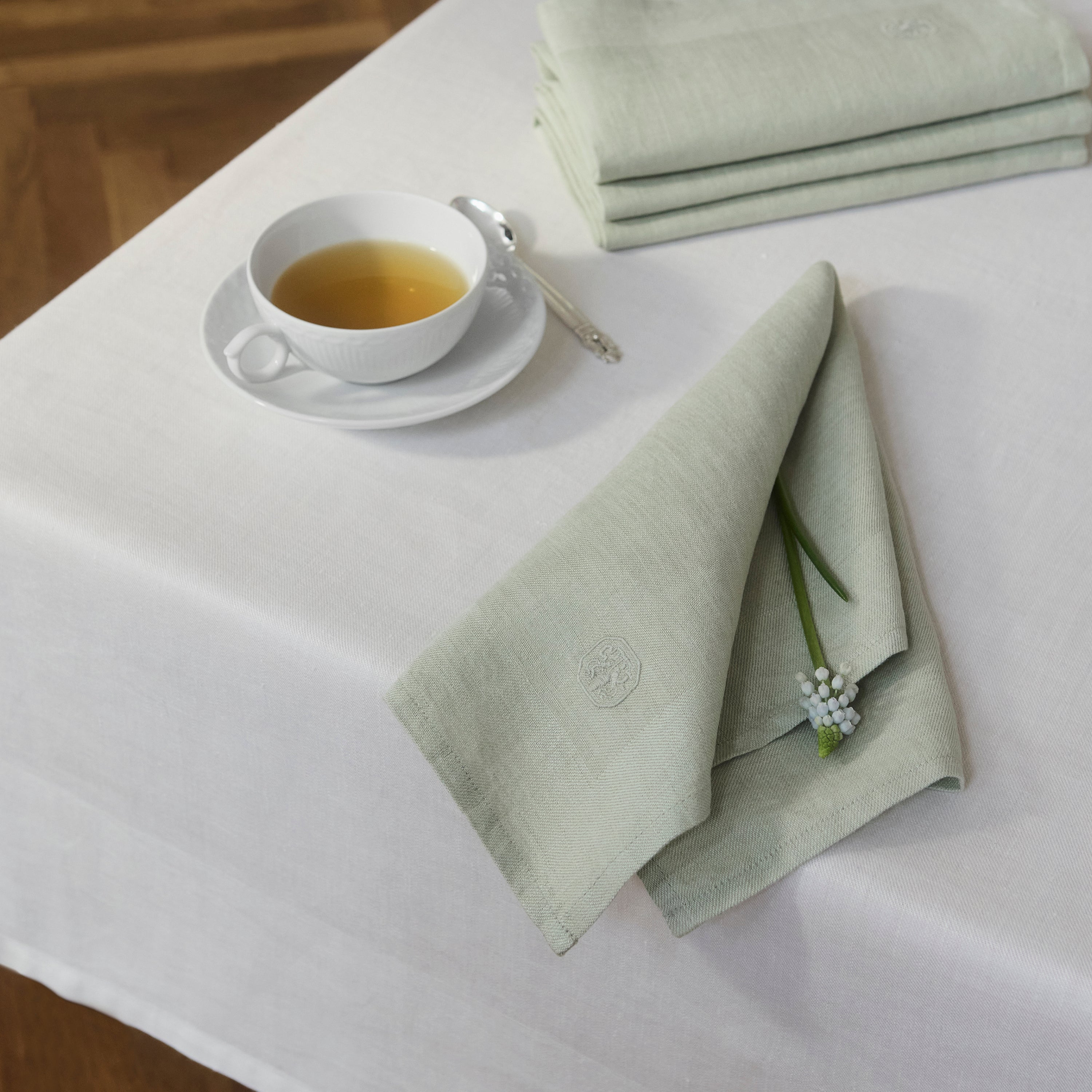 Onze klassieke linnen servet heeft een prachtig geborduurd logo. De keperbinding met fijn linnengaren van de hoogste kwaliteit en de karakteristieke rand geven de linnen servet een lichte, Scandinavische en elegante look.