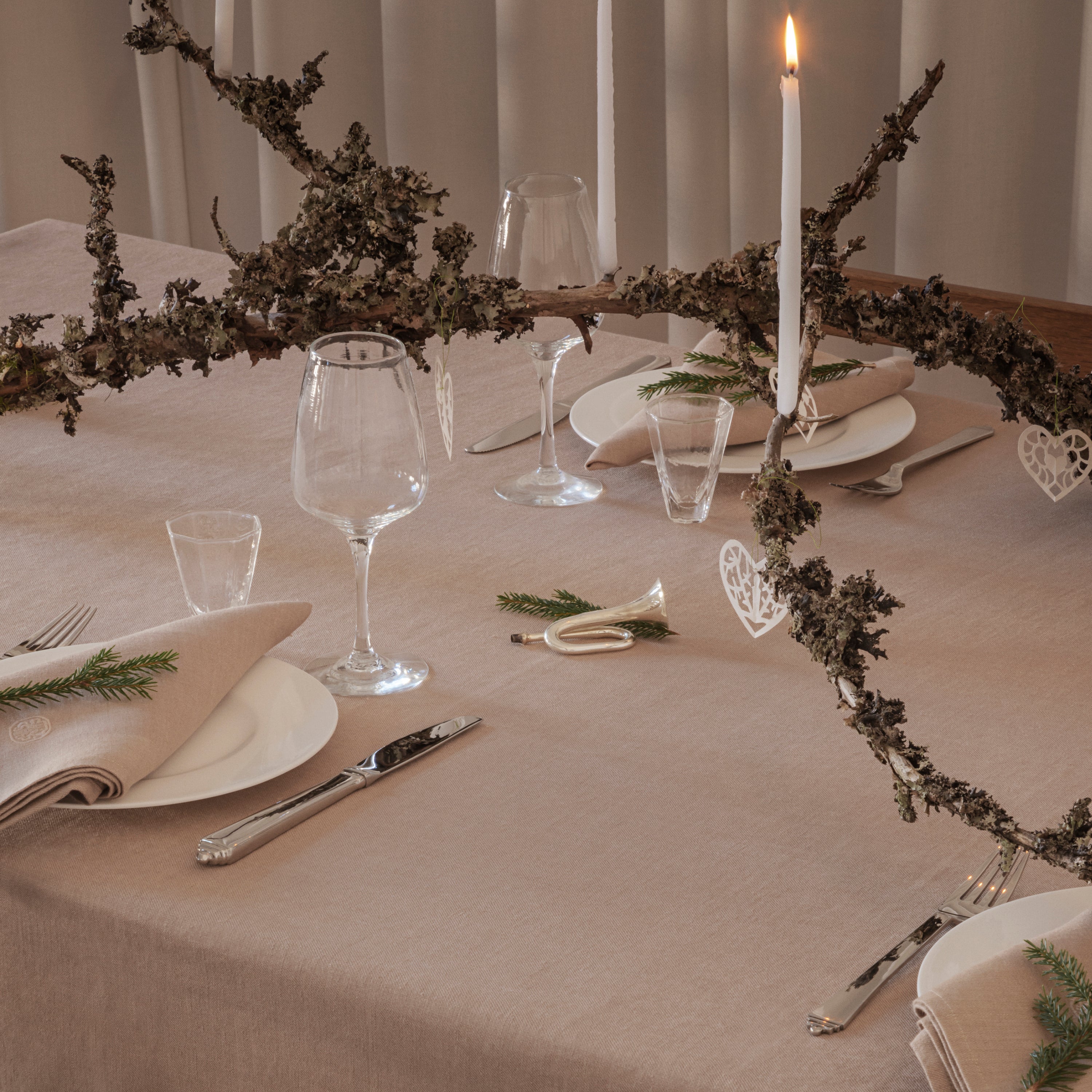Het linnen tafelkleed is ontworpen door ons eigen ontwerpteam en is een eerbetoon aan de sterke tradities van het verleden door zowel het materiaal als de expressie. Het tafelkleed heeft een discreet geborduurd Georg Jensen Damast logo.