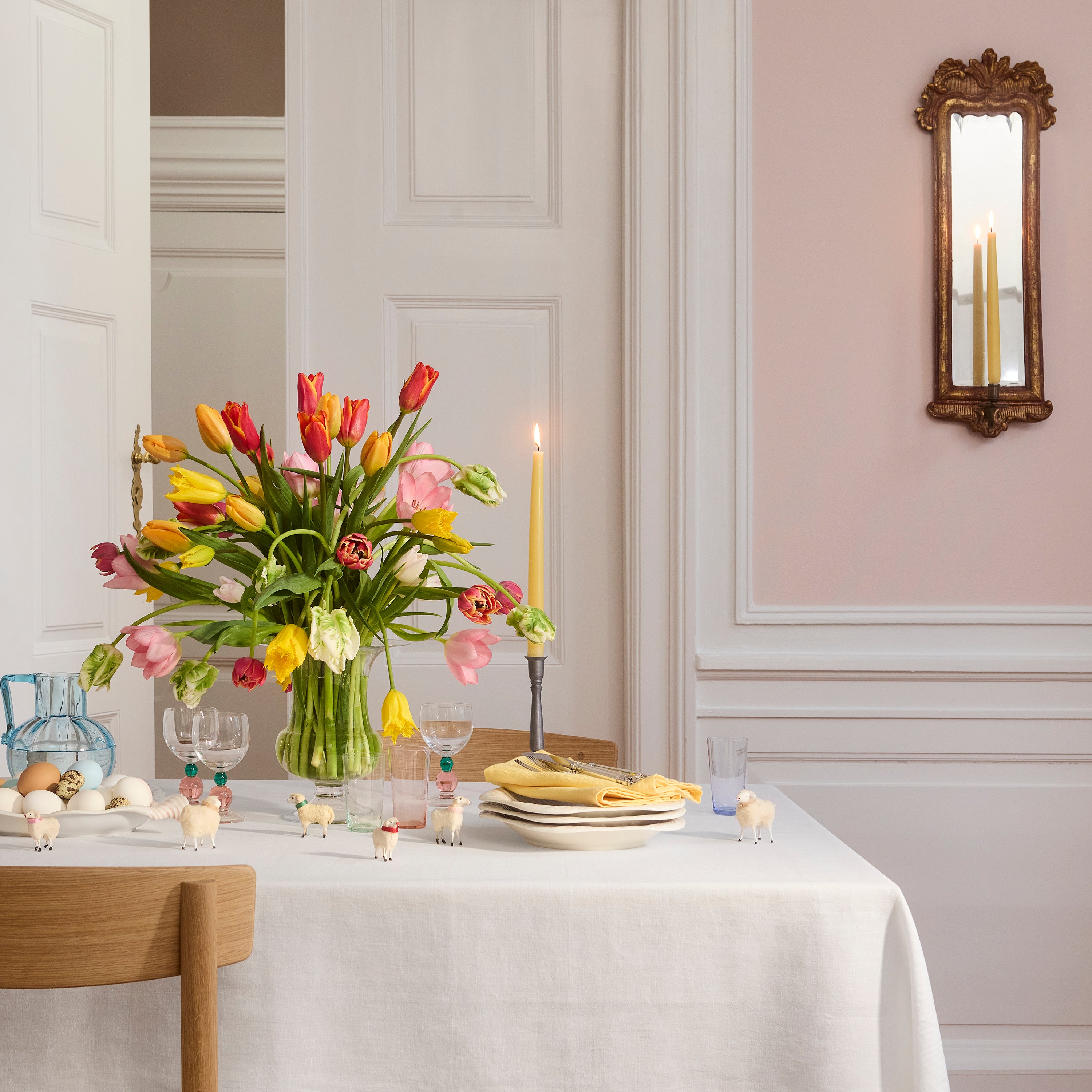 In de tint White is het tafelkleed zo klassiek als het maar kan - en een prachtig alternatief voor onze damast geweven katoenen tafelkleden.