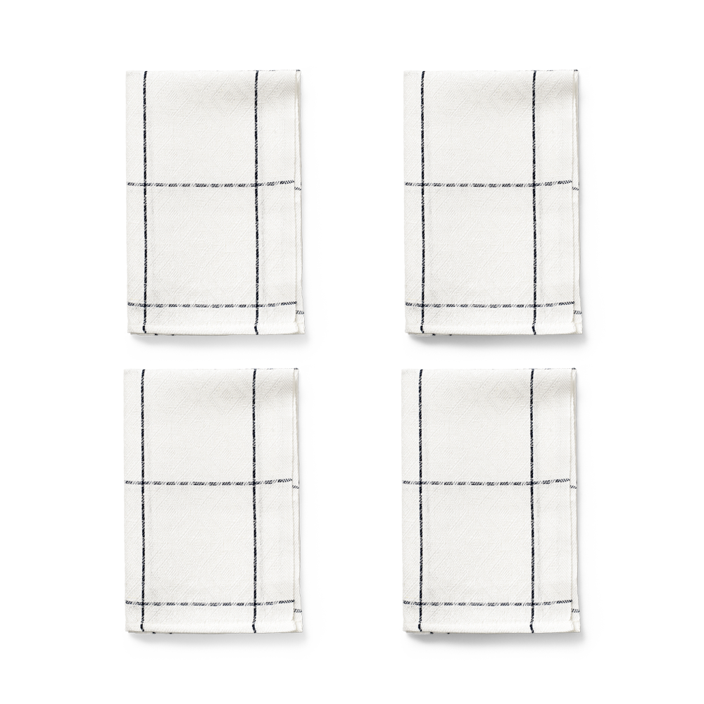 In de kleur White/Navy de damasten servetten een Franse lichtheid en sensualiteit op tafel in de vorm van de tegelijkertijd nonchalante en elegante ruitjes die met donkerblauw garen als extra laag in het ganzenoogpatroon verschijnen. Het is een exclusieve servet die dankzij het zorgvuldige vakmanschap gemakkelijk een lichte kreuk verdraagt en deel uitmaakt van een pretentieloze tafelsetting.