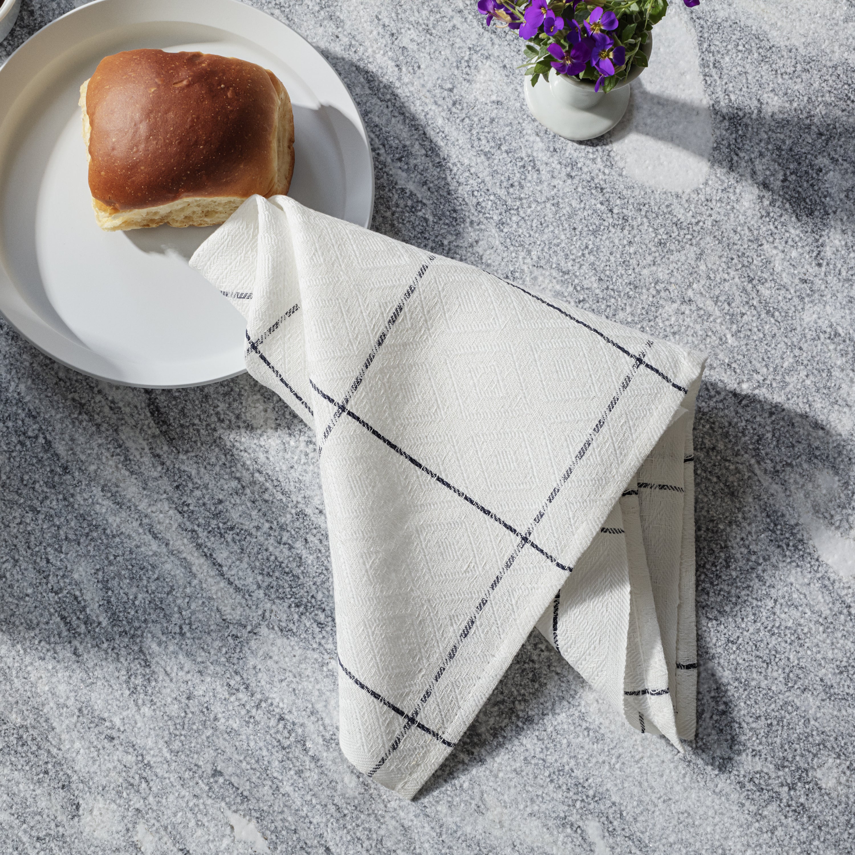 In de kleur White/Navy de damasten servetten een Franse lichtheid en sensualiteit op tafel in de vorm van de tegelijkertijd nonchalante en elegante ruitjes die met donkerblauw garen als extra laag in het ganzenoogpatroon verschijnen. Het is een exclusieve servet die dankzij het zorgvuldige vakmanschap gemakkelijk een lichte kreuk verdraagt en deel uitmaakt van een pretentieloze tafelsetting.