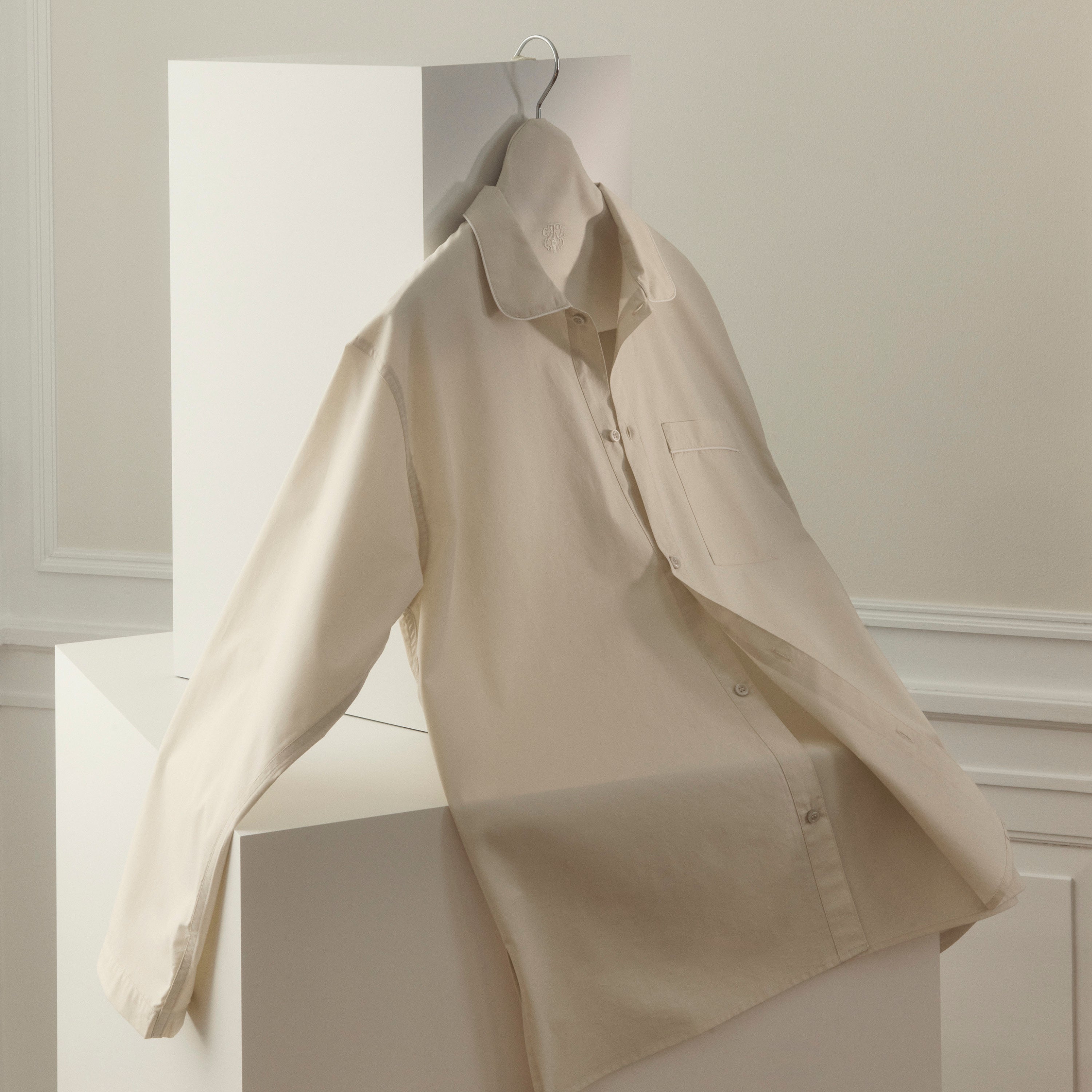 Unisex pyjamas percalevævet i supimabomuld. Pyjamassen har et klassisk snit og elegante, hvide pipings. Archive Linen er en lys beige farve med referencer til linned fra vores århundreder gamle arkiv.