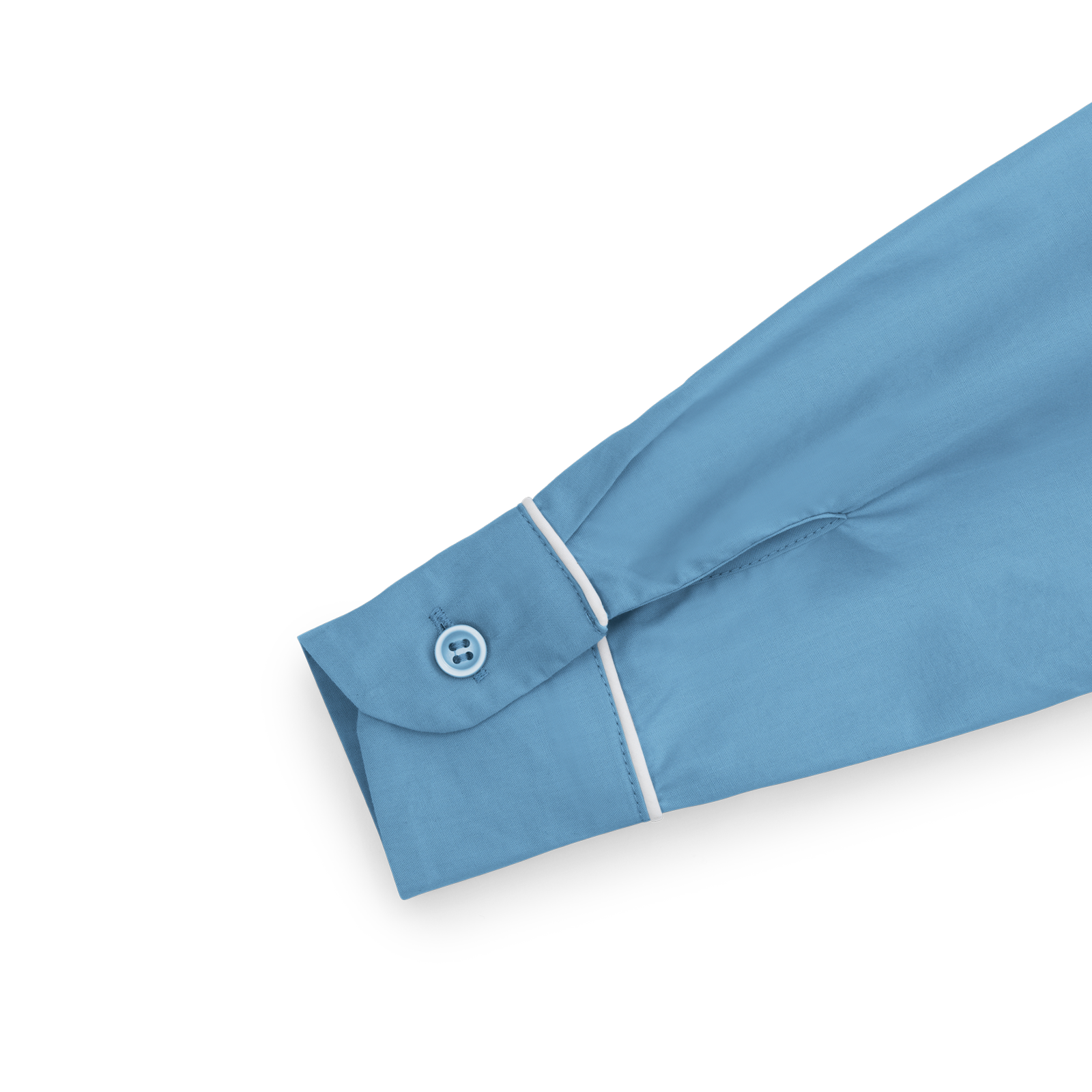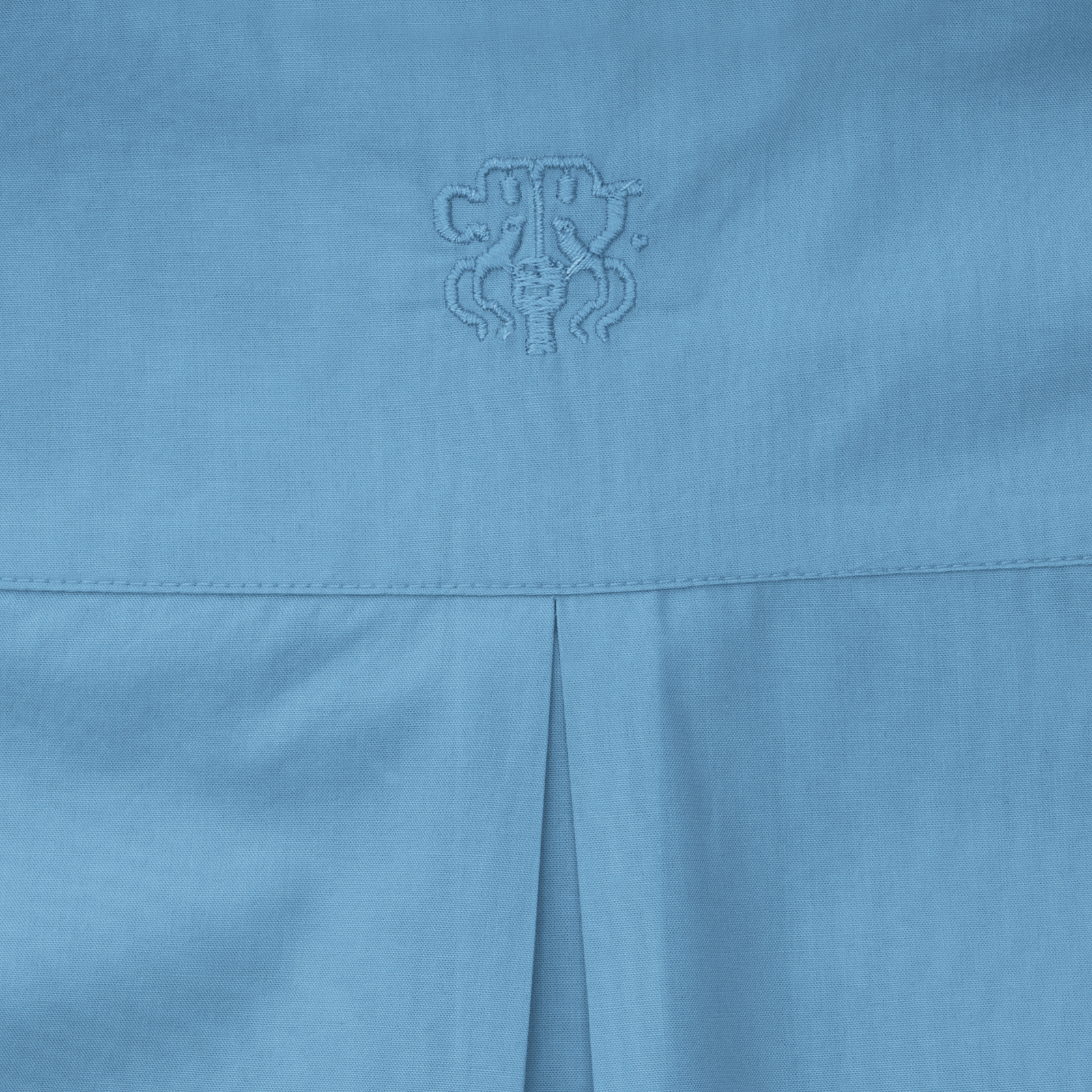 Skjortekjole til børn percalevævet i supimabomuld. Bright Blue er en mættet nuance af blå med referencer til den klare sommerhimmel.