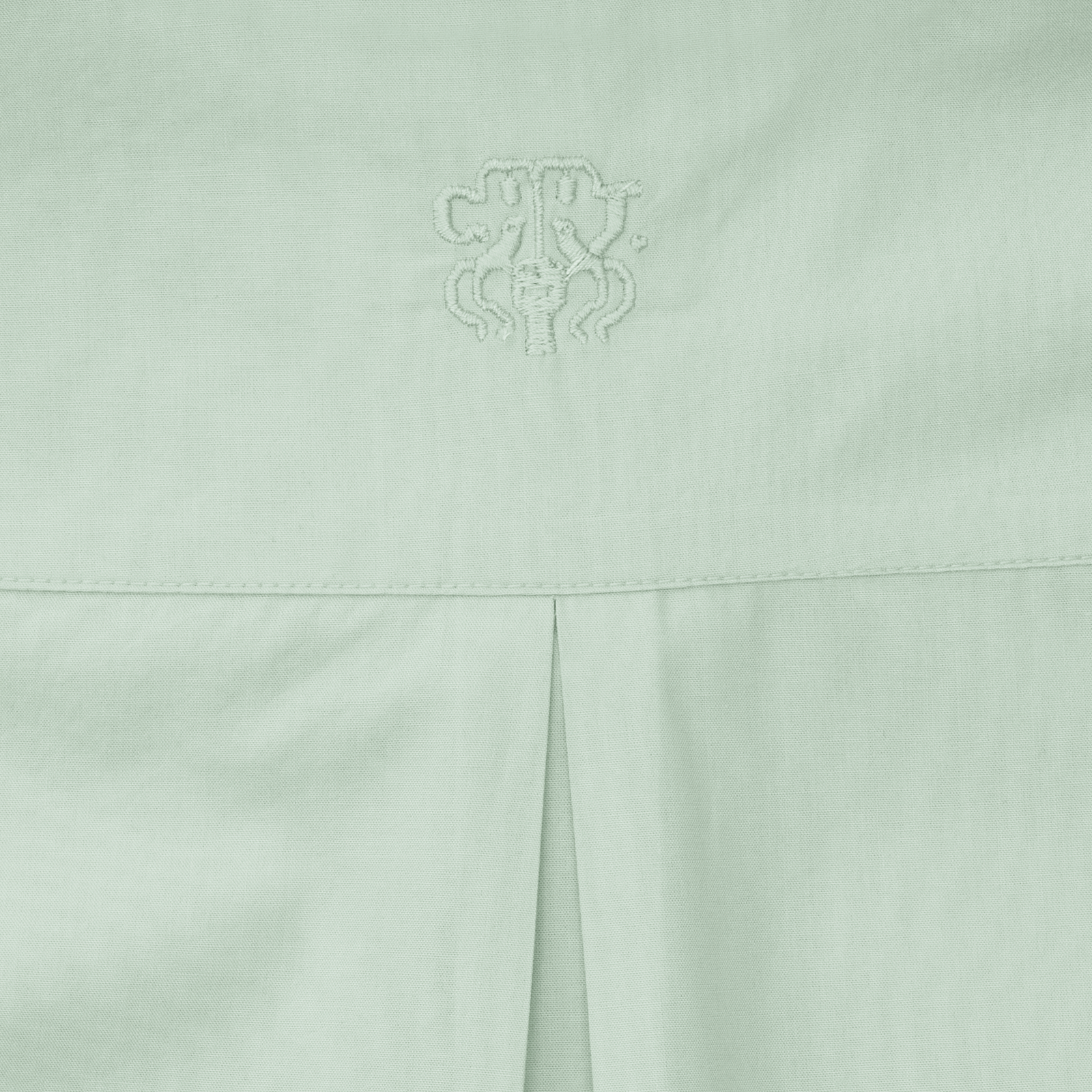 Skjortekjole til børn percalevævet i supimabomuld. Den klare, grønblå farve, Glass Green, er inspireret af farven på råglas.