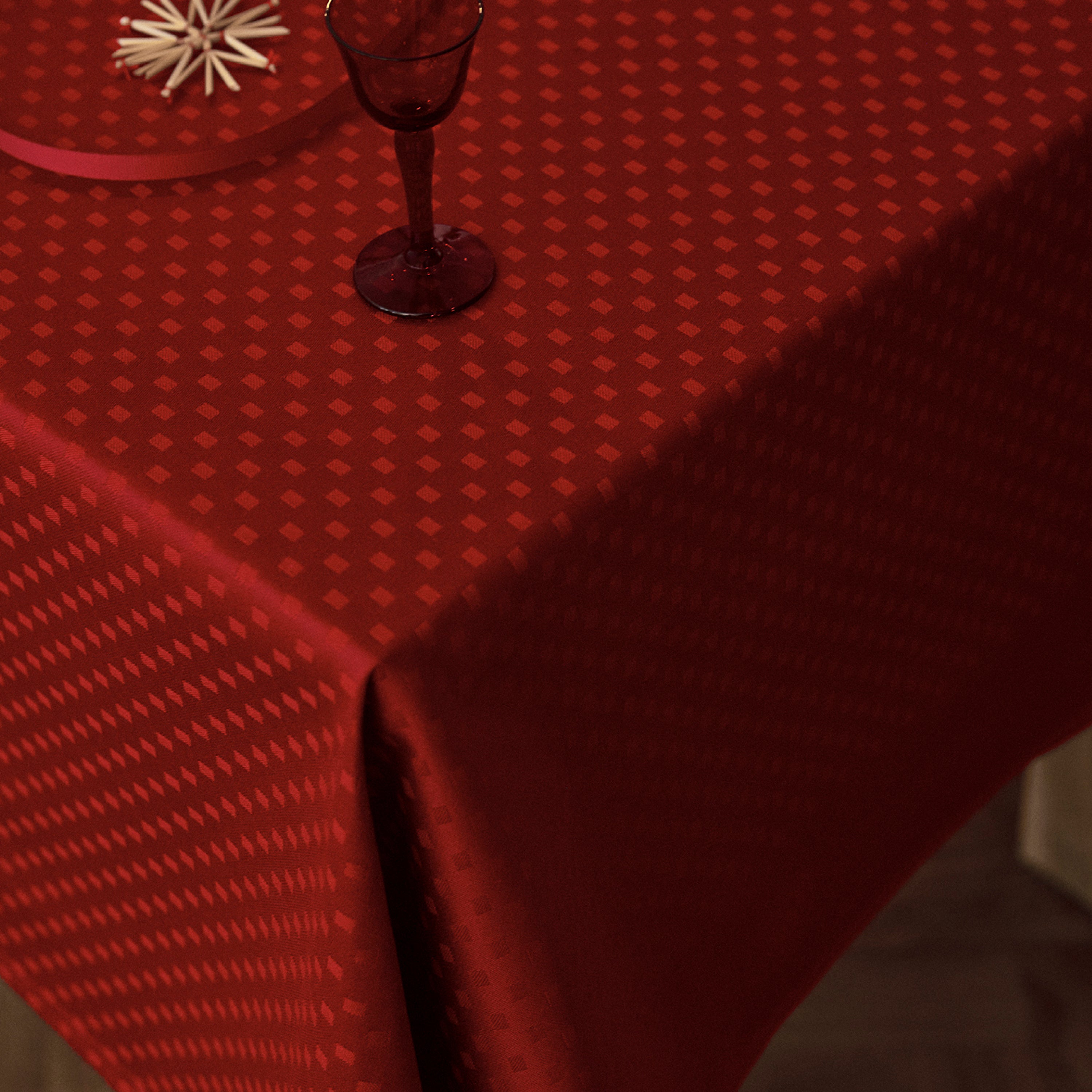 Met zijn delicate, gestileerde sneeuwvlokken is het elegante tafelkleed met dezelfde naam een eeuwige klassieker in de Georg Jensen Damask collectie. Textielkunstenaar Jette Nevers zit achter het iconische, pure ontwerp. De dieprode kleur benadrukt het motief prachtig.