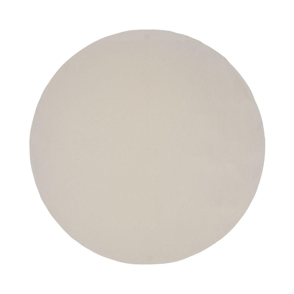 Klassiek damast geweven tafelkleed voor de ronde eettafel met een eenvoudig patroon van kleine sneeuwvlokjes. De interpretatie van de sneeuwvlokgeometrie is zo eenvoudig dat het in elk jaargetijde kan worden gebruikt.