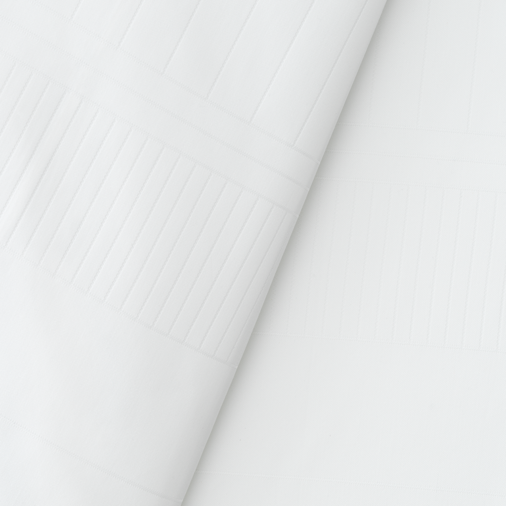 Een eenvoudig en elegant wit damasten tafelkleed met prachtige details. Het tafelkleed kleedt de tafel in een decoratieve, strak gecomponeerde esthetiek om het leven rond de gedekte tafel te accommoderen en te vieren.