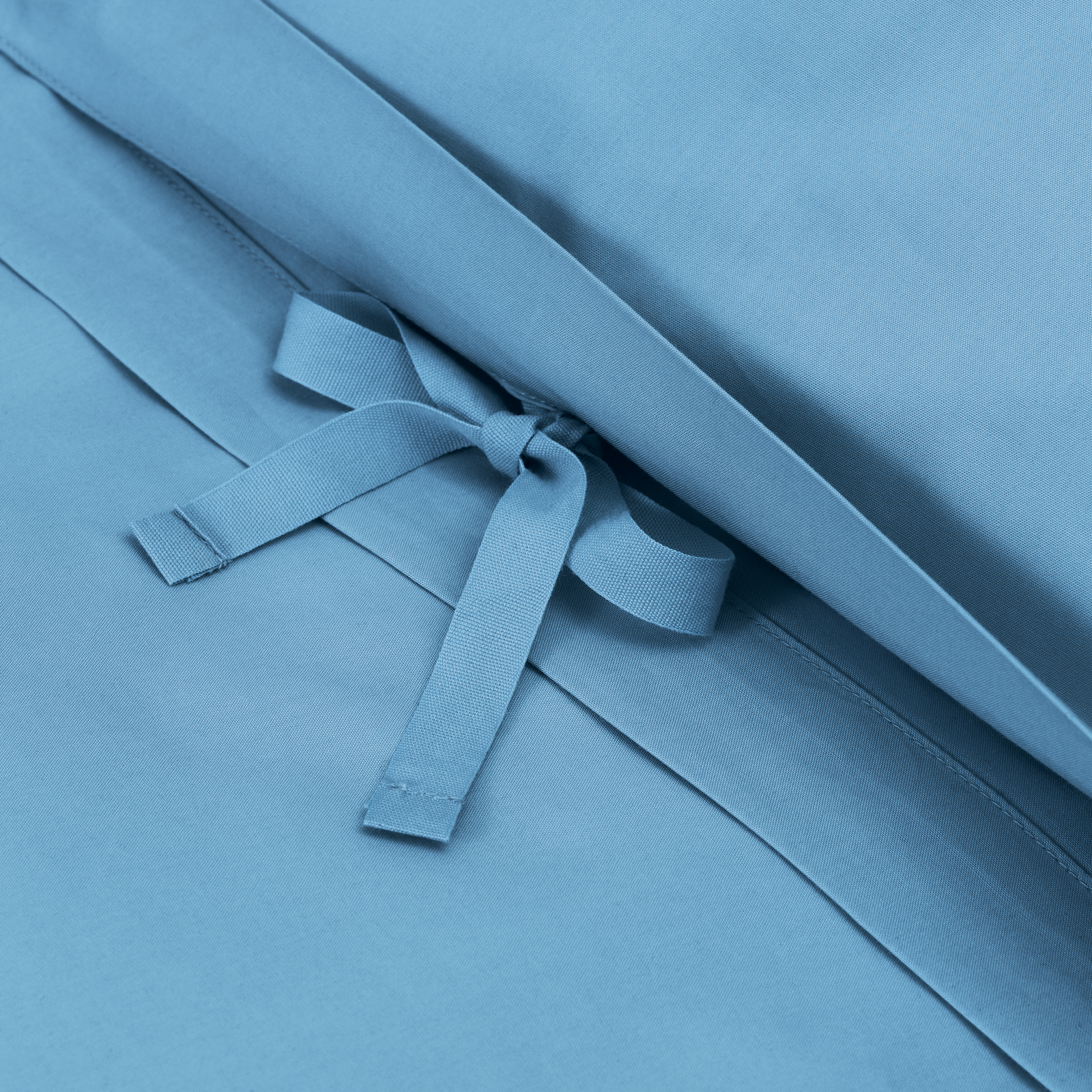 Het dekbedovertrek sluit met bandjes en de kussensloop heeft een envelopsluiting. De beddenset is voorzien van het iconische logo van Georg Jensen Damask als discreet borduursel. Bright Blue is een verzadigde tint blauw met verwijzingen naar de heldere zomerlucht.
