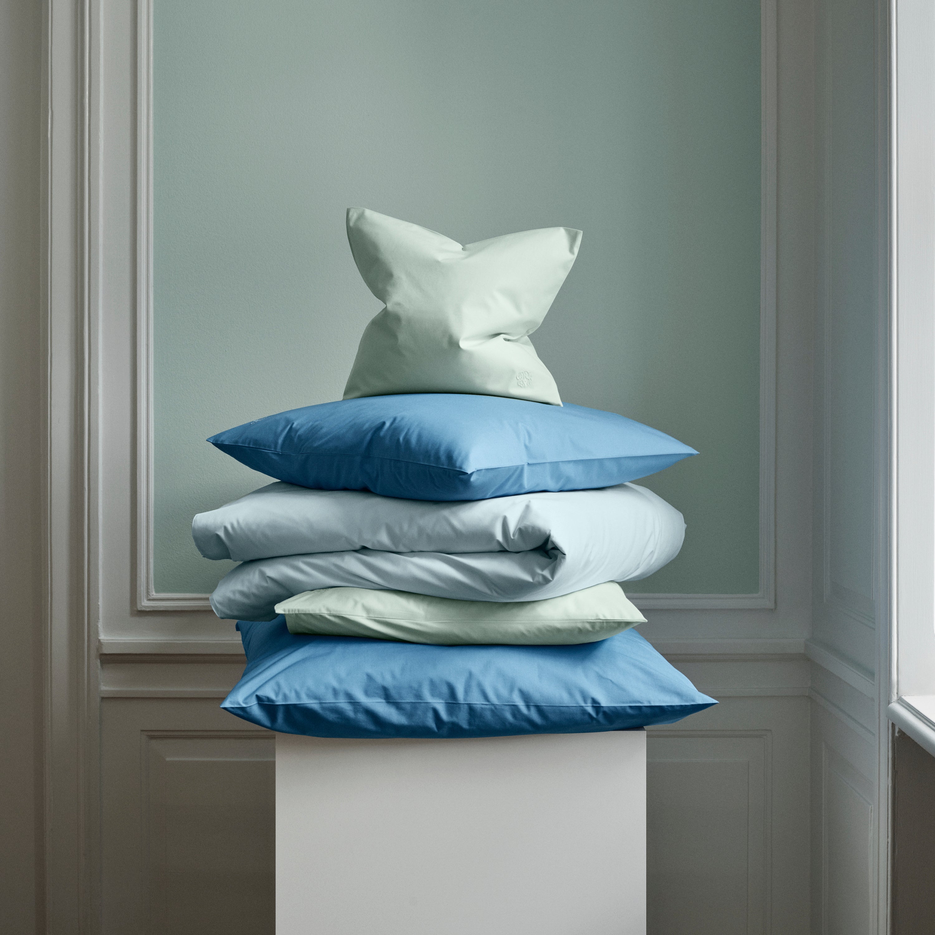 Het Supima Percale assortiment omvat alles van hoofdborden en kussens tot dekbedovertrekken en lakens in kleuren als lichtgrijs, lichtgroen, koel blauw en warme aardetinten. De lange vezels van katoen geven het beddengoed een bijzonder mooie en zeer uniforme kleurtint.