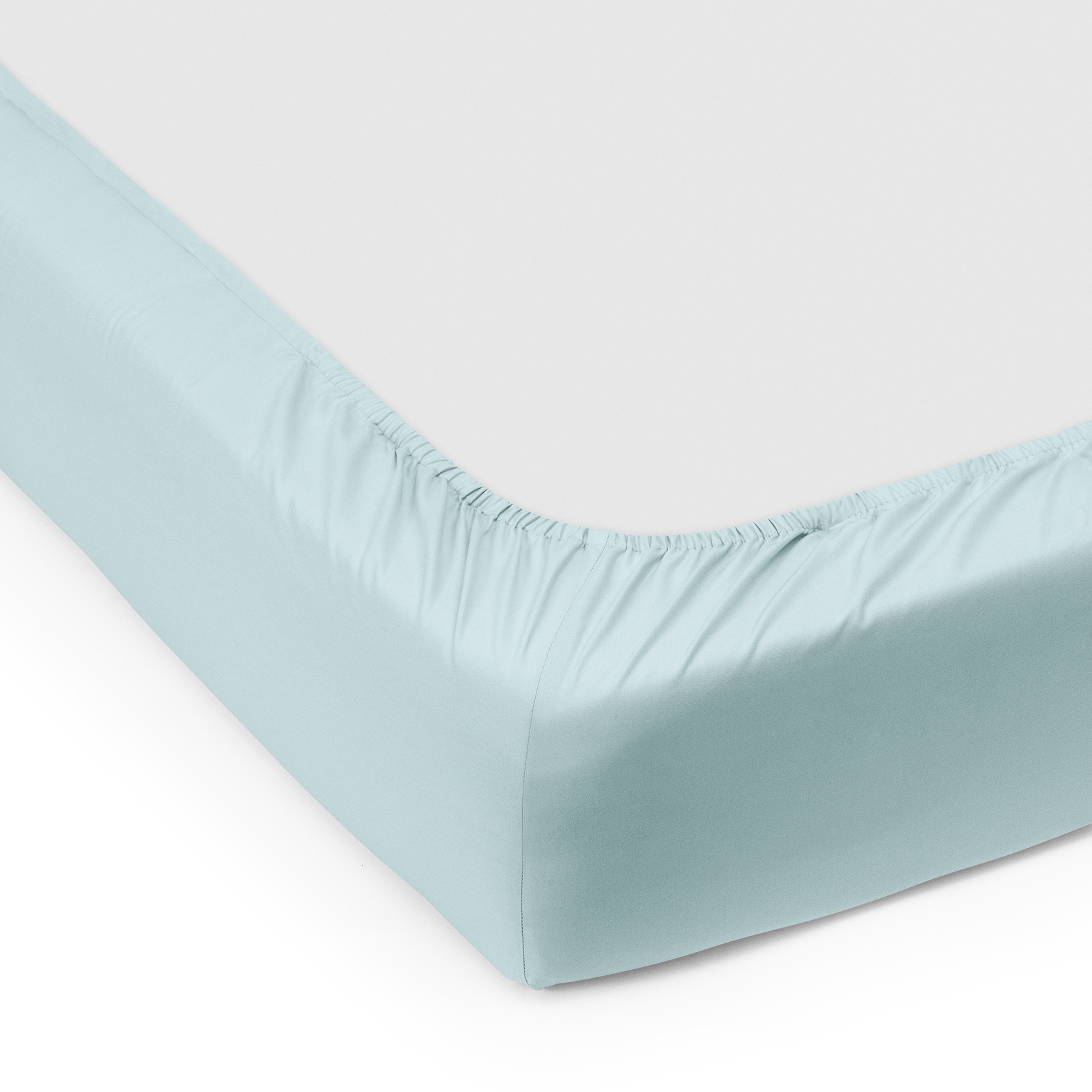 Het hoeslaken is nauwsluitend en heeft elastische hoeken. Het laken is voorzien van het iconische logo van Georg Jensen Damask als een discreet borduursel. Minimal Blue is een zeer lichte versie van lichtblauw met een vleugje aquatinten.
