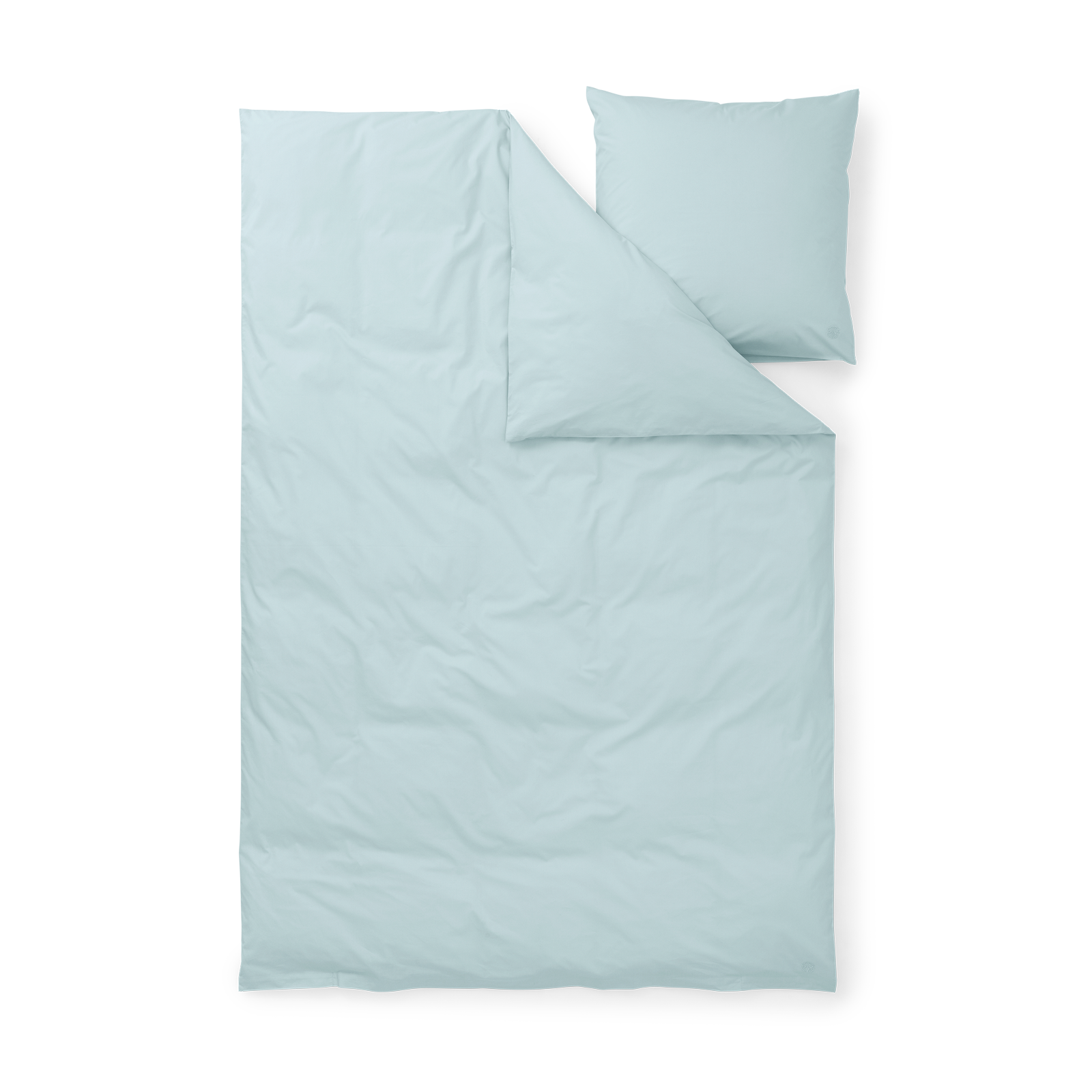 Het dekbedovertrek sluit met bandjes en de kussensloop heeft een envelopsluiting. De beddengoedset is voorzien van het iconische logo van Georg Jensen Damask als discreet borduursel. Minimal Blue is een zeer lichte versie van lichtblauw met een vleugje aquatinten.