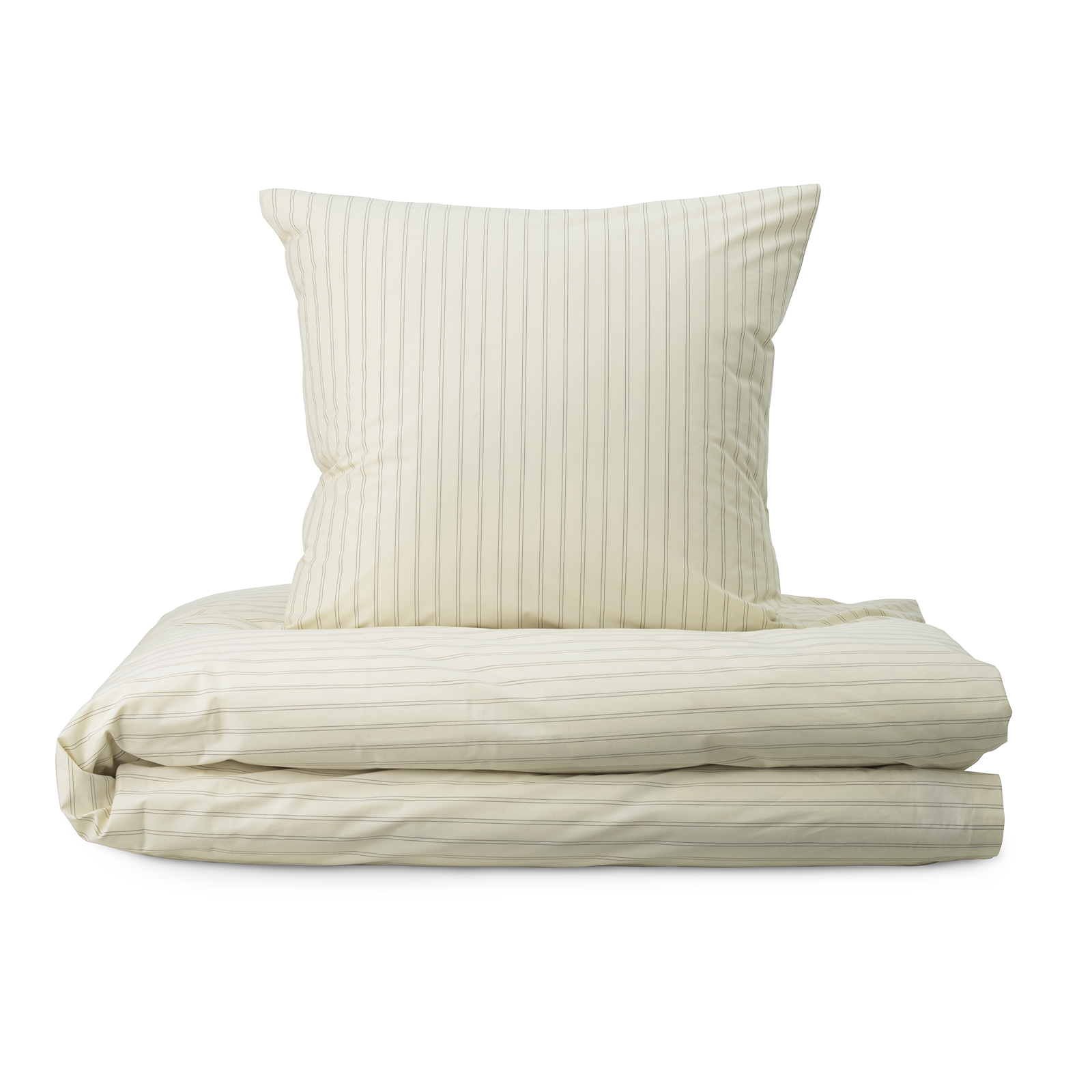 Supima Percale Pinstripe er vævet i Supima bomuld – den bedste kvalitet indenfor Pima bomuld, klassificeret som Superior Pima. Supima udgør kun omkring en procent af verdens samlede bomuldsproduktion og er kendetegnet ved dens ekstraordinært lange og smidige fibre. De lange fibre spindes til et stærkt og blødt garn, der sammen med den fine percalevævning giver en helt særlig blød, glat og stærk overflade, samtidigt med at sengetøjet er let og åndbart.