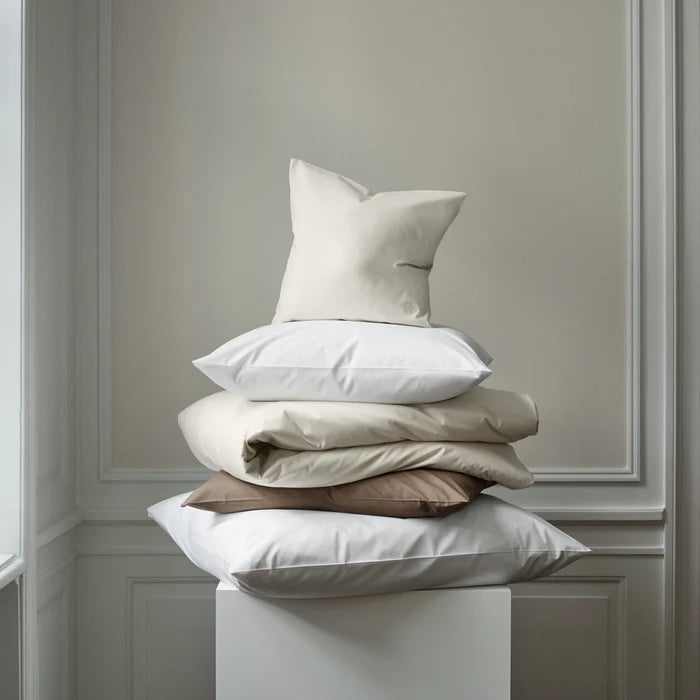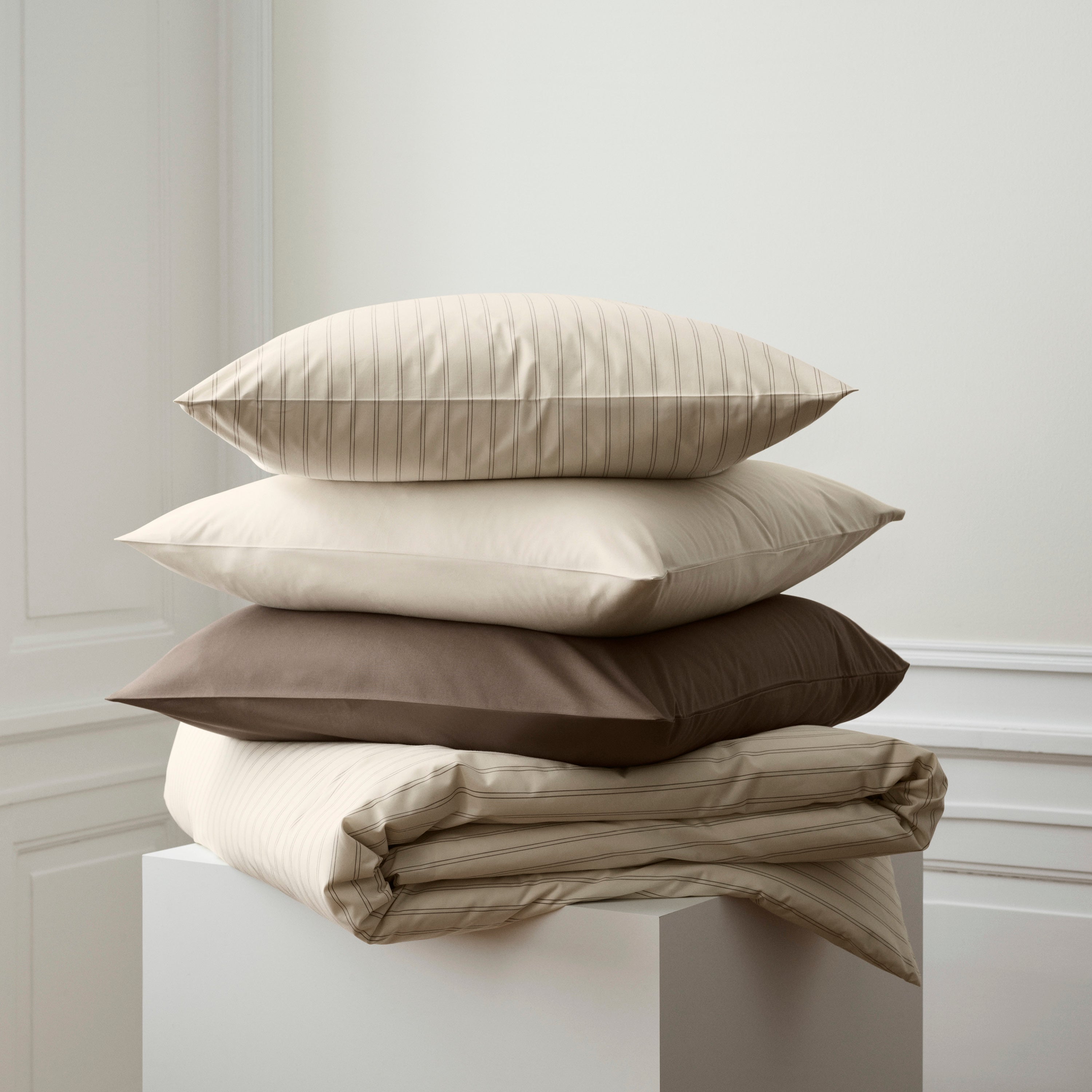 Het Supima Percale assortiment omvat alles van hoofdborden en kussens tot dekbedovertrekken en lakens in kleuren als lichtgrijs, lichtgroen, koel blauw en warme aardetinten. De lange vezels van katoen geven het beddengoed een bijzonder mooie en zeer uniforme kleurtint.
