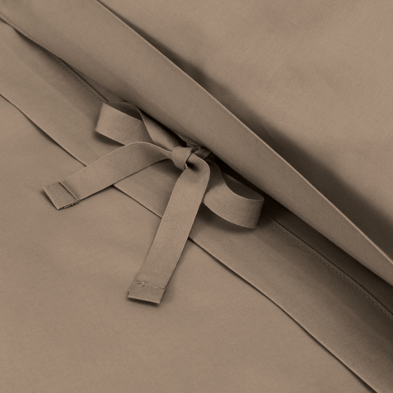 Het dekbedovertrek sluit met bandjes en de kussenslopen hebben een envelopsluiting. De beddenset is voorzien van het iconische logo van Georg Jensen Damask als discreet borduursel. Walnut is een diepe, nootachtige bruine kleur.