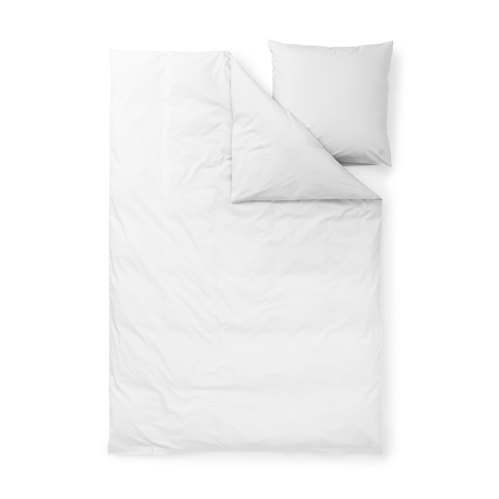 Het dekbedovertrek sluit met bandjes en de kussensloop heeft een envelopsluiting. De beddengoedset is voorzien van het iconische logo van Georg Jensen Damask als discreet borduursel. De kleur White is zuiver wit.