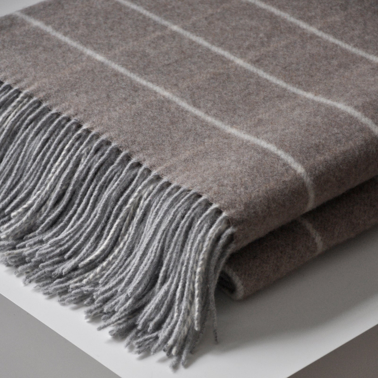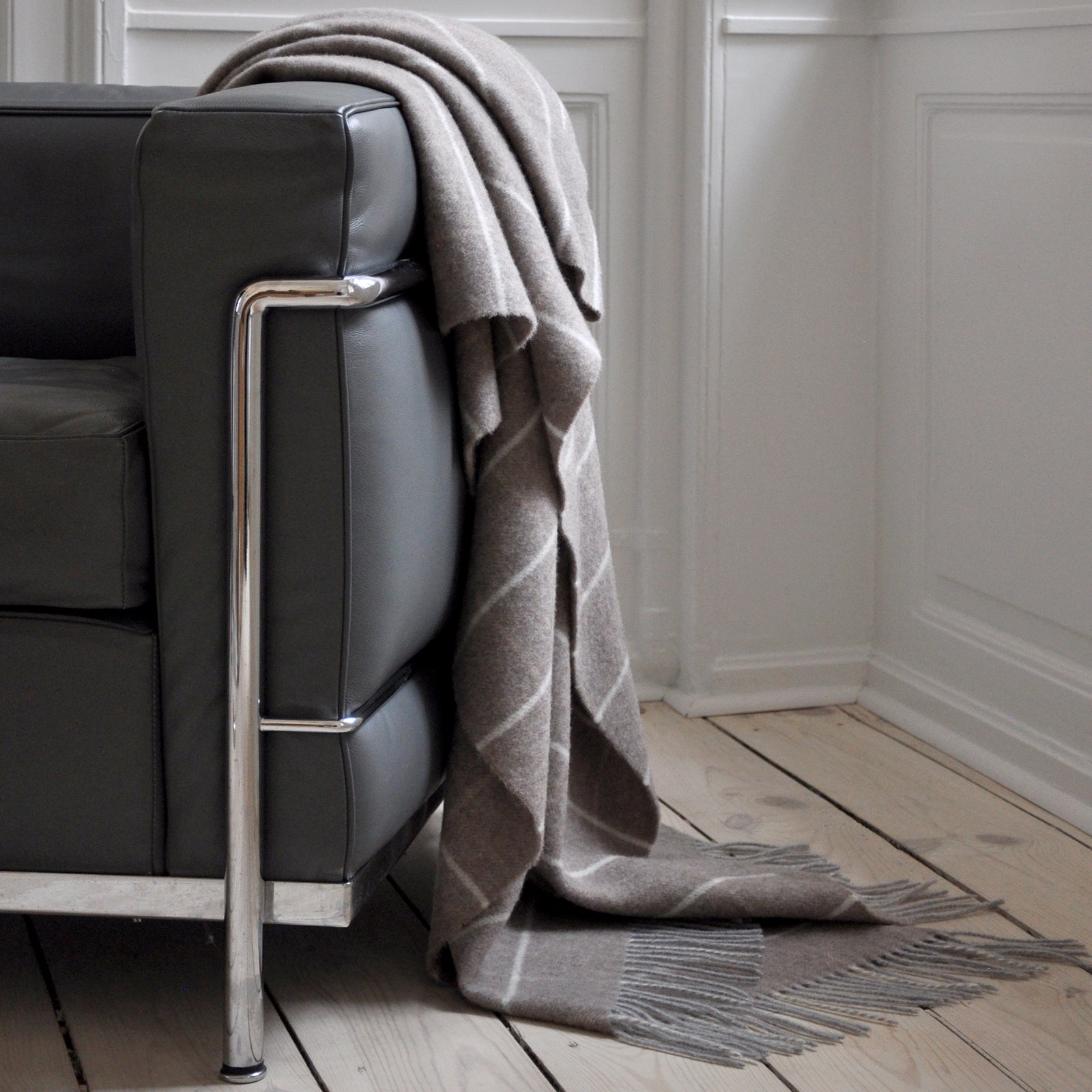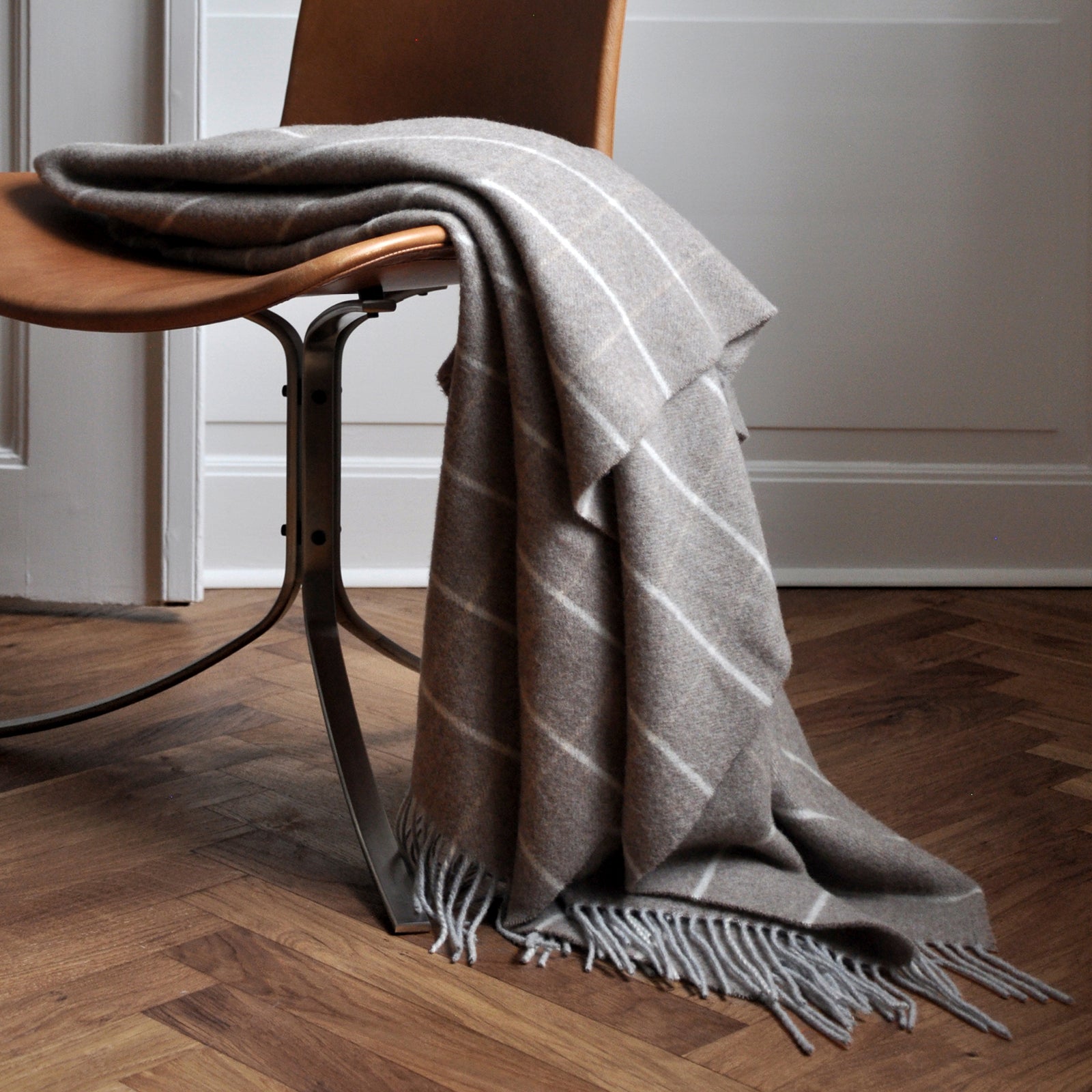 Tender Grid heeft een elegant, geruit patroon dat de plaid een klassieke uitstraling geeft. De combinatie van 90% merinowol en 10% kasjmier maakt de plaid extra zacht en de fijne structuur van de wol zorgt voor een speciale luchtigheid. Het is geweven in een bruine tint en heeft lange franjes.