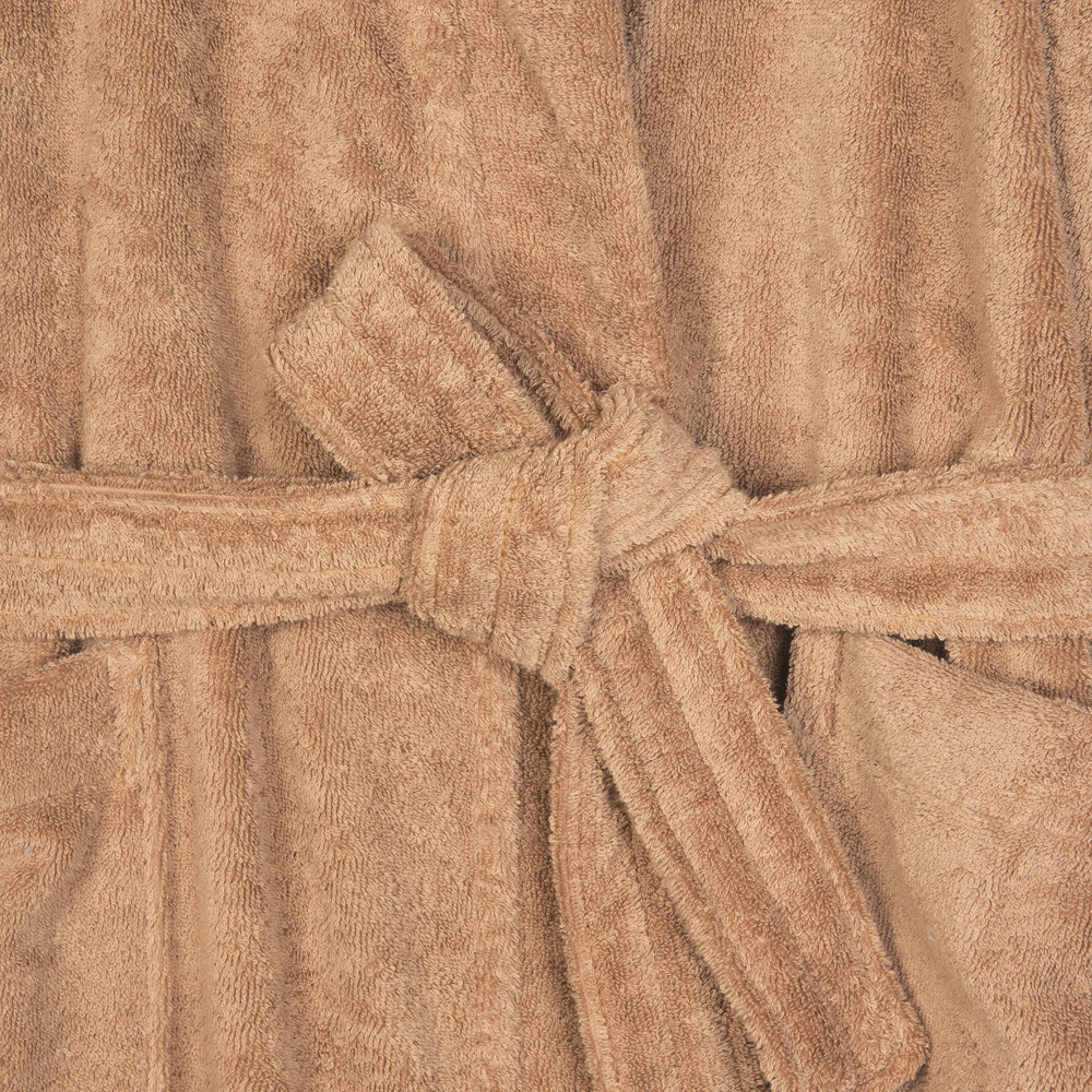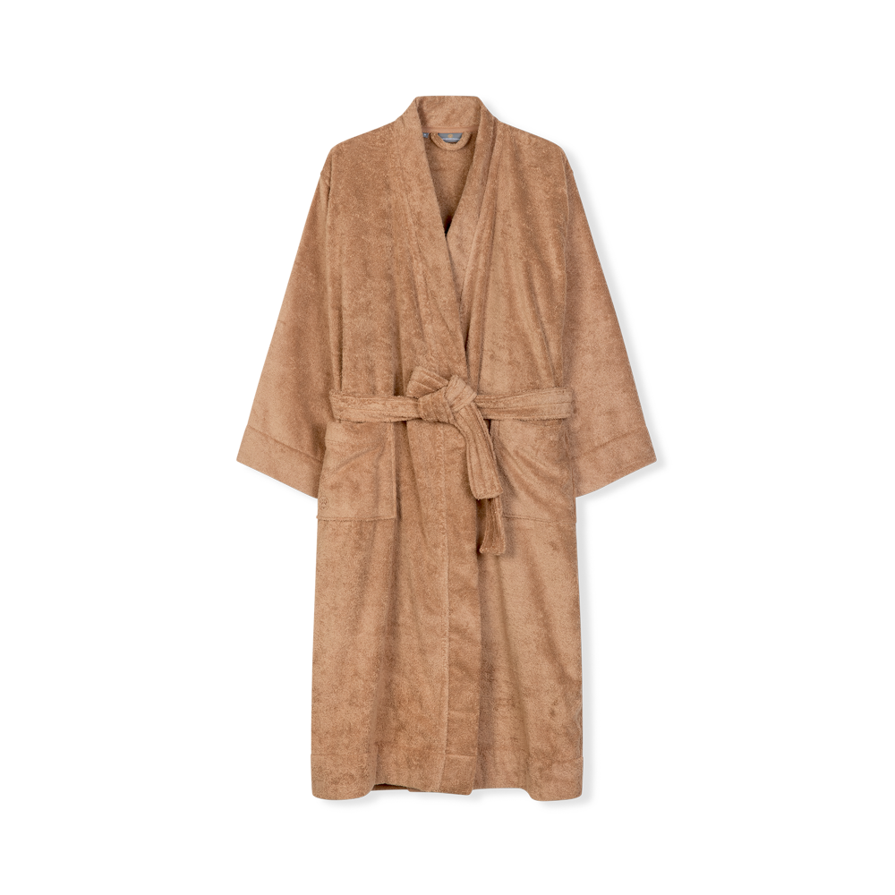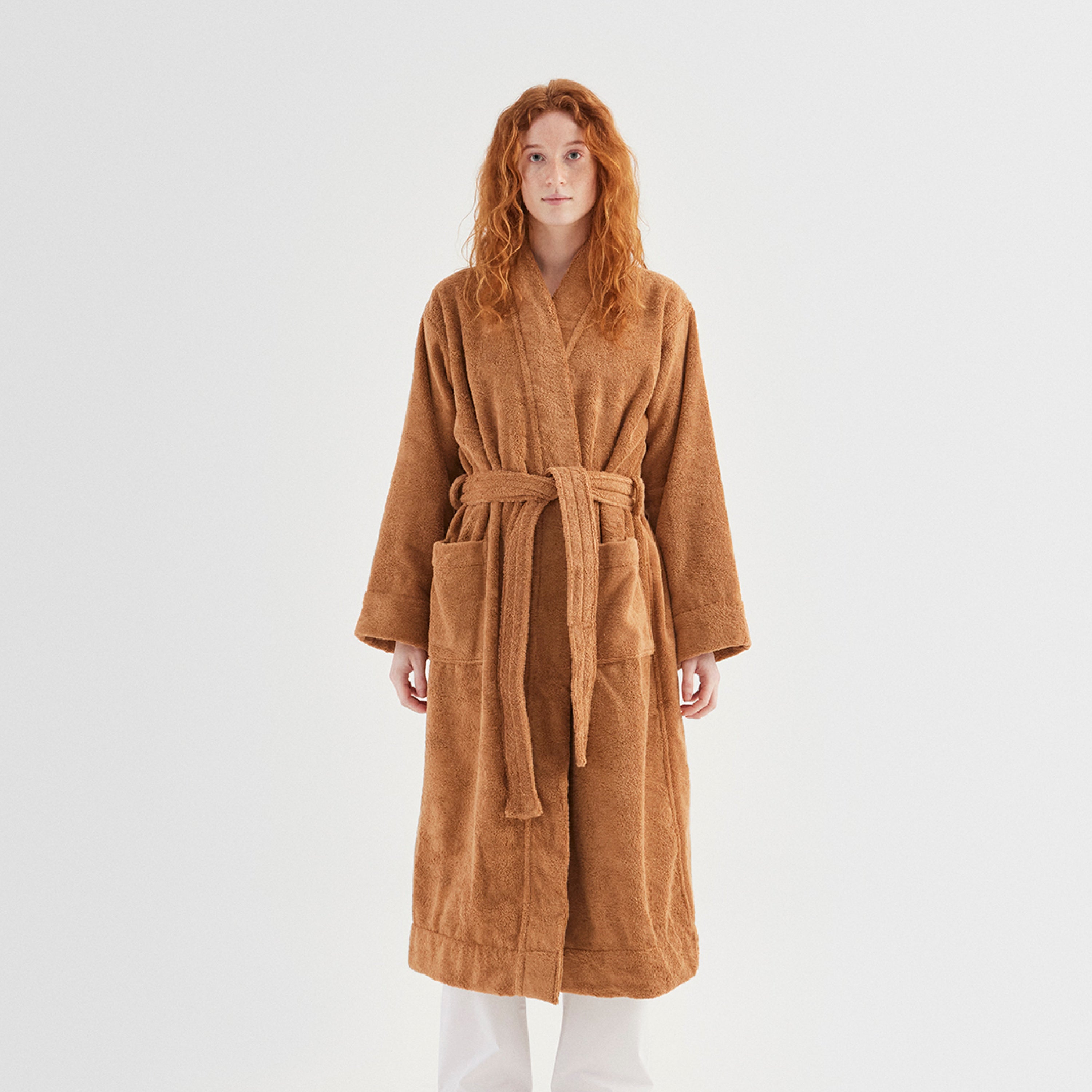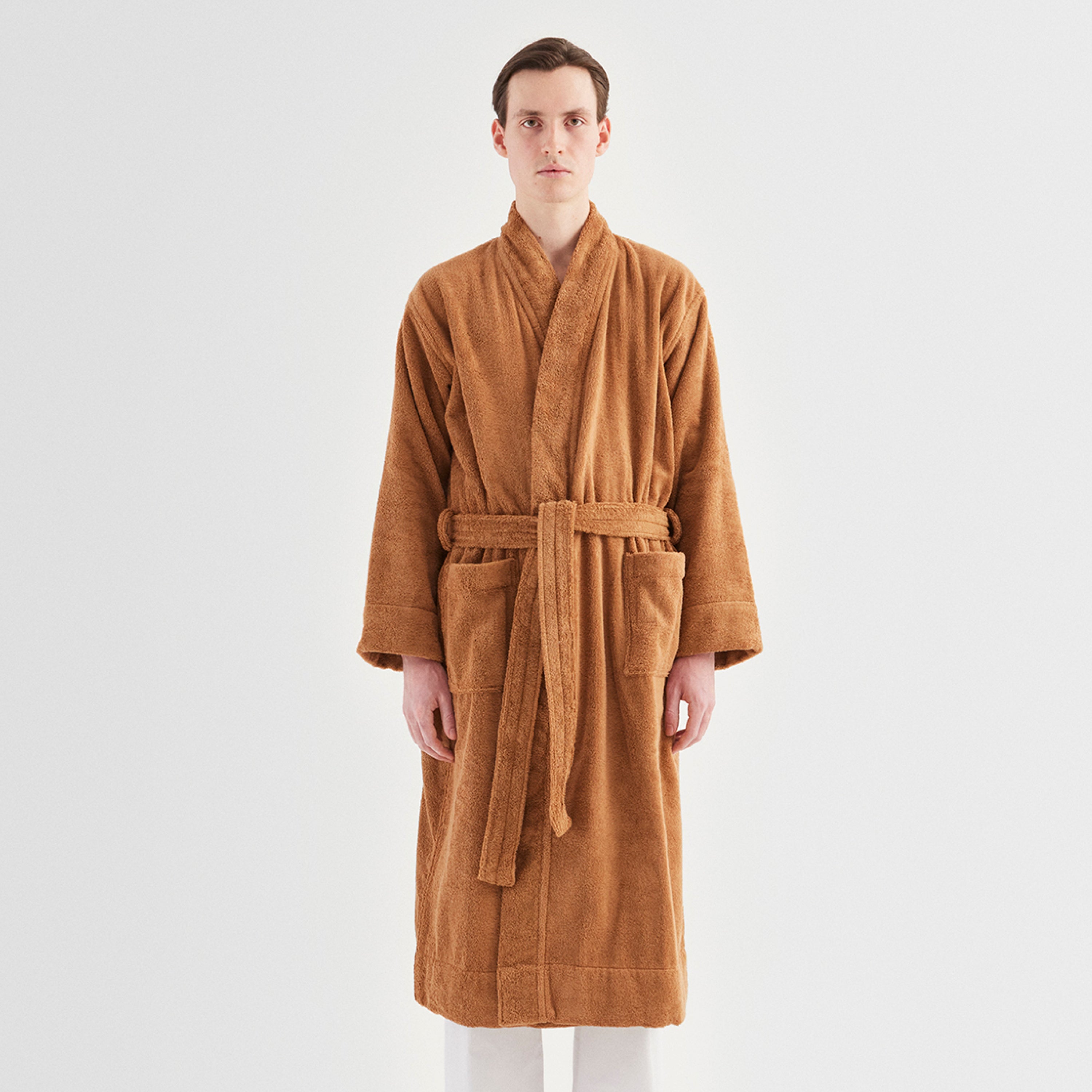 Creëer een gevoel van alledaagse luxe met de knusse en gezellige badjas van biologisch katoenen badstof. Perfect voor frisse ochtenden na het douchen of als uniform op rustige weekenddagen.
