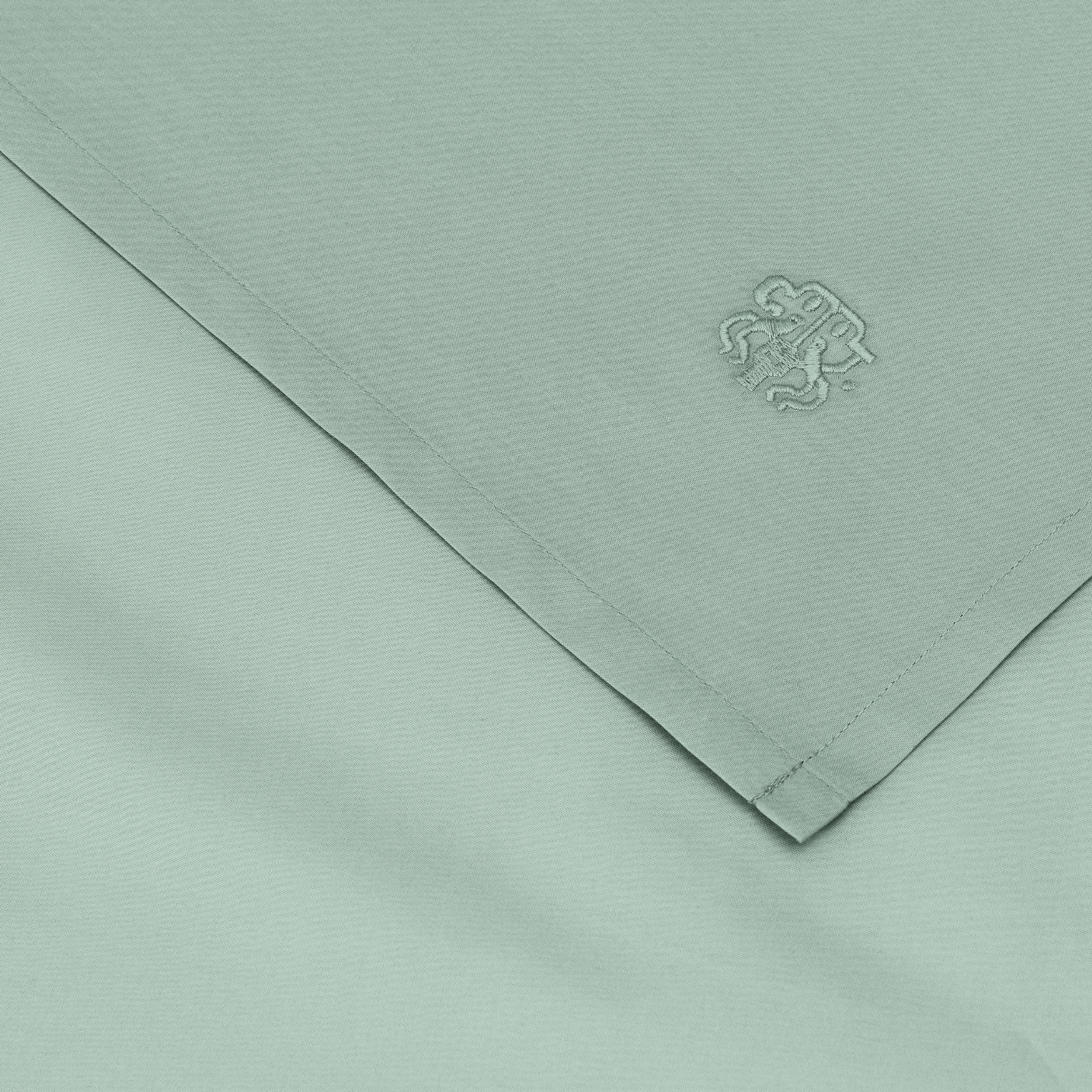 Het klassieke platte laken kan op alle bedden worden gebruikt, maar wordt niet aanbevolen voor verhoogde bedden. Het laken is voorzien van het iconische logo van Georg Jensen Damask als een discreet borduursel. Sage Green is een groentint met subtiele blauwgrijze ondertonen.